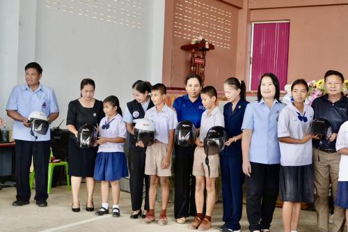 กิจกรรมสำคัญในครั้งนี้ ได้มีการมอบหมวกนิรภัยให้แก่นักเรียนจำนวน 150 คน จาก 3 โรงเรียนในเขตอำเภอเมืองร้อยเอ็ด ได้แก่ โรงเรียนบ้านแดงโนนสว่าง โรงเรียนบ้านหนองตากร้า (ศรีพิทยา) และโรงเรียนบ้านหนองนาสร้าง (ศิริราษฎร์บูรณะ) เพื่อส่งเสริมให้นักเรียนมีอุปกรณ์ป้องกันที่เหมาะสม และสามารถใช้งานได้จริงในชีวิตประจำวัน โดยเฉพาะการเดินทางไป-กลับโรงเรียน