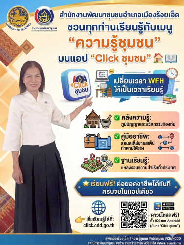 @ สพอ.เมืองร้อยเอ็ดประชาสัมพันธ์แนะนำการดาวน์โหลด และ การใช้งาน Application “Click ชุมชน”