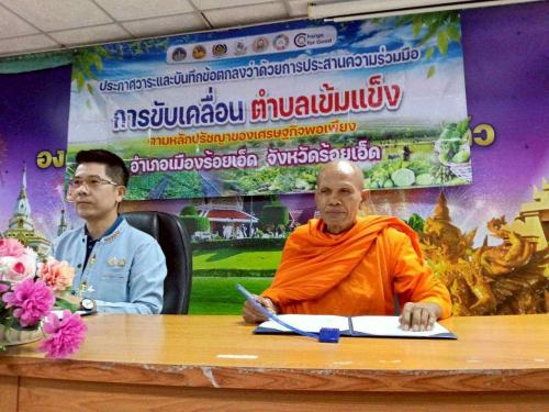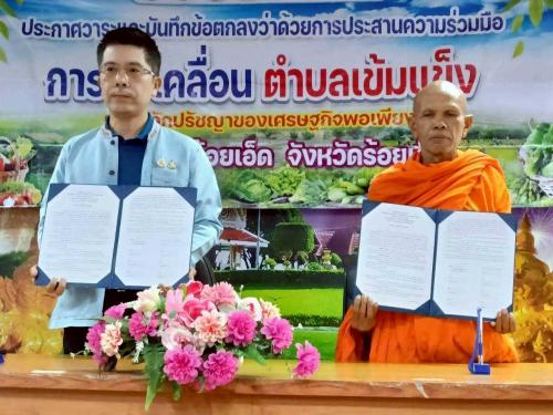 @ พช.เมืองร้อยเอ็ด : จัดกิจกรรมพิธีลงนามบันทึกข้อตกลงความร่วมมือ (MOU) “ตำบลเข้มแข็ง” ตามหลักปรัชญาของเศรษฐกิจพอเพียง